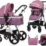 Stylový kočárek 2v1 nabízí kombinaci hluboké korby a sportovní sedačky v jednom, lehký a pevný rám, velká odpružená kola a bohatou výbavu pro pohodlné cestování s miminkem. Díky možnosti nasazení po i proti směru jízdy, polohovatelnému opěradlu, 5bodovým pásům a nastavitelné rukojeti je ideální volbou pro moderní rodiče. Součástí je nánožník, držák nápojů, moskytiéra, příruční taška a prostorný košík.