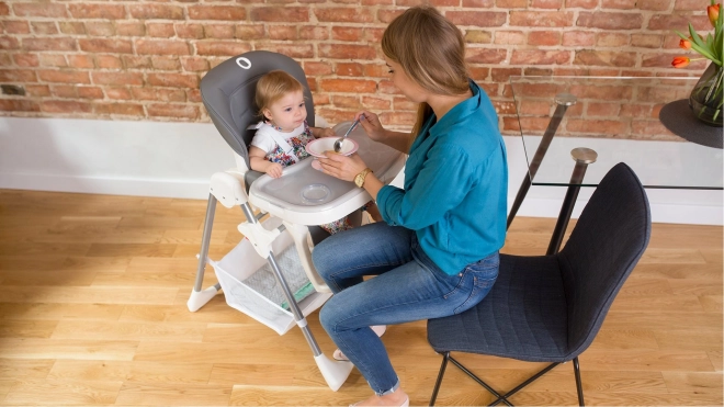 Měkké a nastavitelné 5bodové pásy drží dítě ve správné pozici bez dráždění pokožky. Konstrukce splňuje evropskou normu EN 14988 pro maximální klid při každém krmení.
