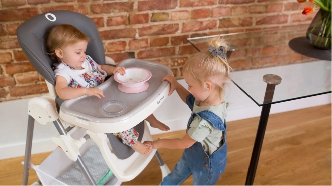6 výšek sedáku, 3 polohy opěrky zad a 3stupňové nastavení tácky zaručí pohodlí od prvních příkrmů až po samostatné stravování.