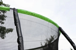 Vstupní otvor se zipem a vnitřní umístění sítě zamezí doskoku do prostoru s pružinami. Pěnové krytí tyčí zvyšuje ochranu při pohybu.