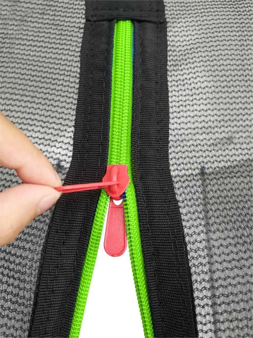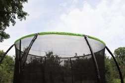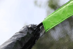 Vnitřní síť s předním vstupem na zip chrání skákající před doskokem na pružiny a spolu s ocelovou obručí a polstrovanými elipsovitými tyčemi zajišťuje maximální bezpečí.