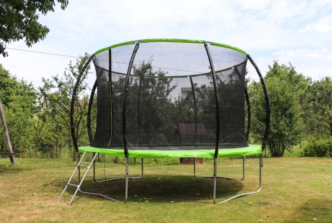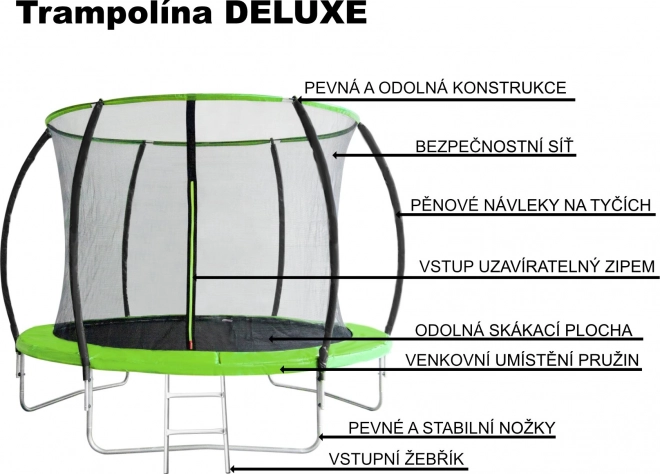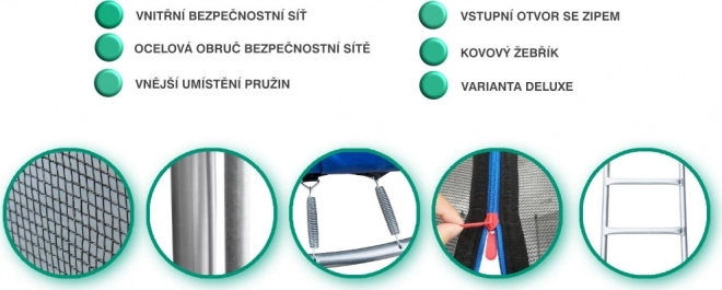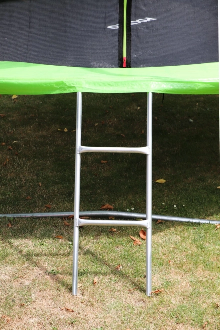 Součástí je kovový žebřík pro snadný nástup. Vnější pružiny jsou kompletně zakryté odolným limcem s vnitřní výplní pro bezpečné skákání.