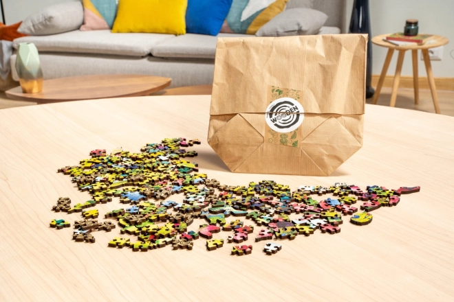 Toto unikátní puzzle je vyrobeno ze dřeva s vysoce kvalitním barevným potiskem. Každý dílek má zcela unikátní tvar, což poskytuje vzrušující stavění. Najdete zde dílky, které připomínají skutečná zvířata, květiny a jiné předměty z reálného života.