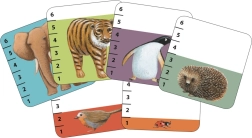 Představujeme hru Kdo z koho: ideální pro děti ve věku 3 až 6 let, která nejenže přináší zábavu, ale také rozvíjí jejich pozornost a schopnost porovnávat. Hráči se postupně střídají v otáčení karet a ten, kdo má na kartě větší zvíře, vyhrává. Díky zobrazenému metru snadno poznají, které zvíře je větší.