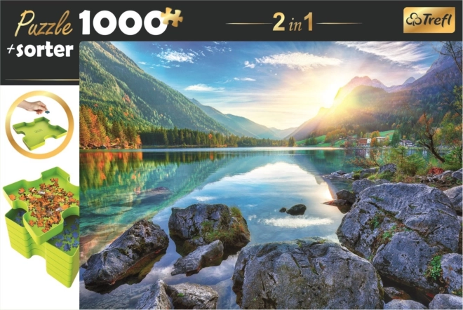 Kompletní set pro milovníky skládání: puzzle s motivem malebného jezera Hintersee v Německu a praktický třídič na dílky v jednom balení. Obsahuje 1000 dílků pro relaxační zábavu a šest stohovatelných nádobek ve tvaru puzzle pro rychlé a přehledné třídění podle tvarů či barev.