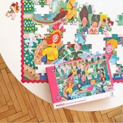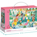 Veselé dětské puzzle pro malé milovníky pohádek: 100 dílků s motivem princezen na promenádě o rozměru 65 × 45 cm. Ideální od 5 let, podporuje rozvoj logického myšlení, trpělivost a jemnou motoriku. Praktická krabička s uchem pro snadné přenášení zajistí zábavu doma i na cestách.