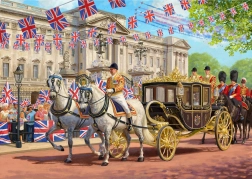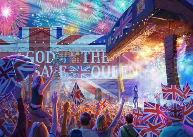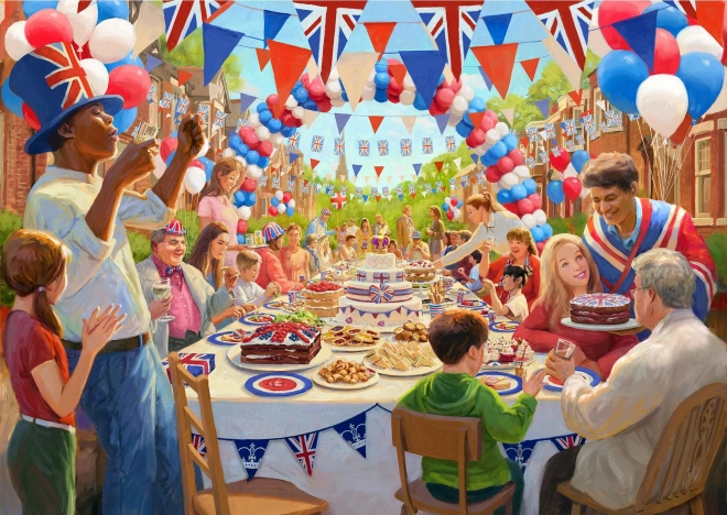 Objevte sadu 4 samostatných puzzle, které oslavují Británii: Derby v Epsom Downs, koncert u paláce, jízdu královského kočáru při Trooping the Colour a živou pouliční slavnost. Každé puzzle má 500 dílků a po složení měří cca 49 × 34 cm; v balení najdete i předlohy motivů.