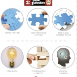 Každé puzzle má 500 dílků a po složení dosahuje rozměru cca 34 × 48 cm. Precizní zpracování dílků zaručuje přesné napojování, syté barvy a odolnost materiálu pro opakované skládání.