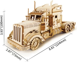 Tento detailní a propracovaný model kamionu je skvělým příkladem precizní řemeslné výroby. Vyroben z laserem vyřezávaných dílků z 2 mm lipové překližky, které se snadno vytlačují z podložky. Účelem je rozvíjet vaše technické myšlení, představivost a jemnou motoriku.