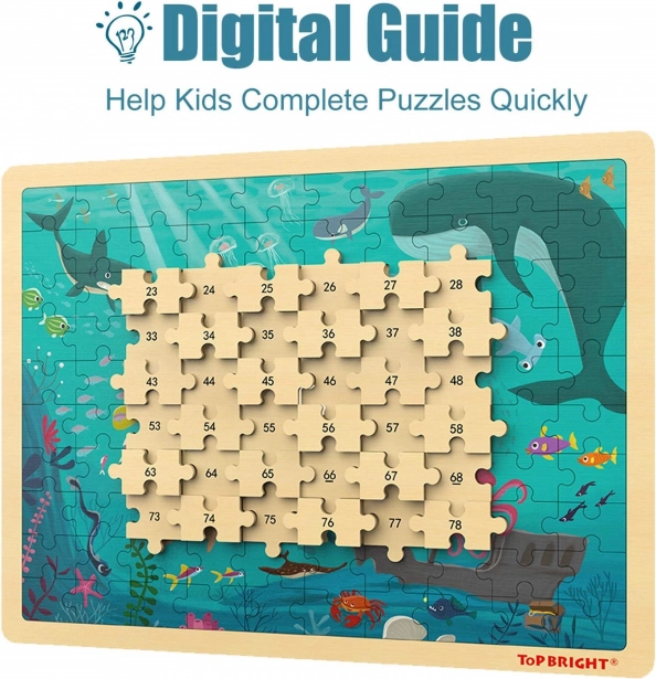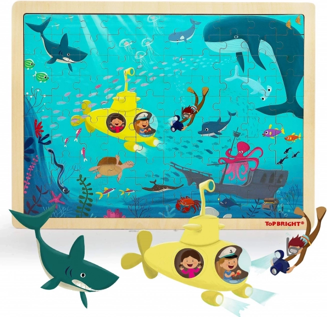 TOP BRIGHT Dřevěné puzzle Mořský svět nabízí zábavu a rozvoj dětské fantazie s 100 dílky na pevné desce, která funguje jako podložka.
