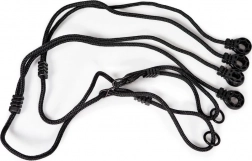 Houpačka se snadno zavěšuje pomocí kovových kroužků na závěsných lanech, což zajišťuje stabilitu a pevnost celého setu.