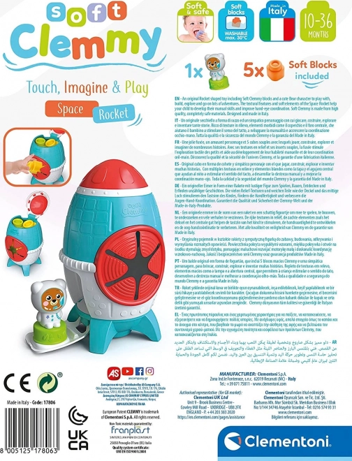 Tento barevný box Soft CLEMMY v designu vesmírné rakety nabízí dětem 10–36 měsíců bezpečné a podnětné prostředí pro první stavění a objevování. Měkké kostky jsou příjemné na dotek, snadno se mačkají, a díky texturovaným povrchům skvěle stimulují hmat. Postavička medvídka‑kosmonauta se dá nasazovat na kostky a zapojit do kreativity i tematické hry.