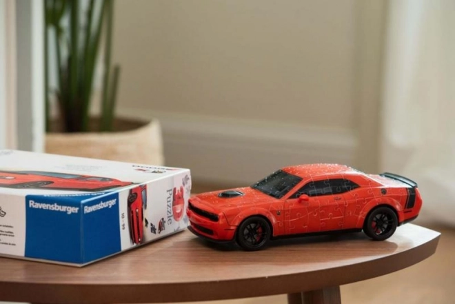 Vytvořte si vlastní kousek americké legendy. 3D puzzle Ravensburger věrně zobrazuje sportovní vůz DODGE CHALLENGER R/T Scat Pack Widebody v atraktivní červené barvě. Speciální zakřivené dílky z pevného plastu do sebe přesně zapadají a model drží pevně bez nutnosti lepení.