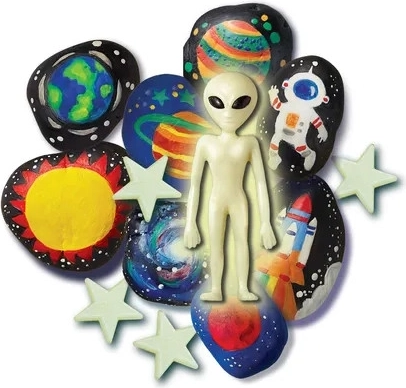Sada 4M pro malování na kameny je ideální způsob, jak děti mohou dát průchod své kreativitě. Tato úžasná sada obsahuje vše, co vaše dítě potřebuje k vytvoření vlastních vesmírných uměleckých děl, včetně fosforeskujících hvězdiček a mimozemšťana, který svítí ve tmě. Umožňuje dětem nejen tvořit, ale i vynalézat své malé příběhy o životě ve vesmíru.