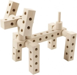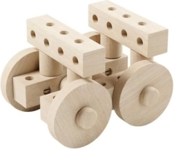 Obsahuje bukové válečky průměru 32 mm, hranoly a kolečka s otvory, které podporují neomezenou tvořivost a rozvoj jemné motoriky.