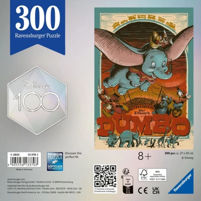 Vstupte do světa kouzel s výroční edicí DISNEY 100 let a oblíbeným slůňátkem Dumbo. Puzzle od Ravensburger vyniká precizním zpracováním, přesným výsekem a odolnými dílky, které do sebe přirozeně zapadají. Díky 300 dílkům je skládání plynulé a zábavné pro děti i dospělé.
