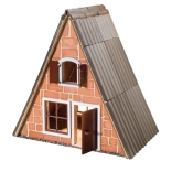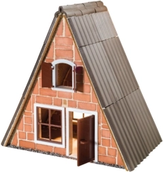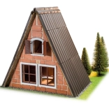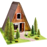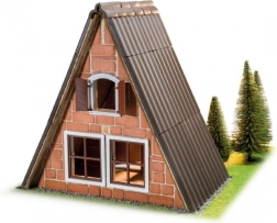 A‑frame design s okny a dveřmi zaujme malé stavitele i dospělé modeláře. Skvělý úvod do světa architektury.