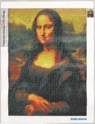 Replikujte slavné umělecké dílo Mona Lisa na svém plátně pomocí drobných diamantových kamínků.