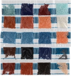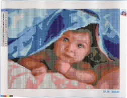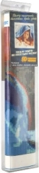 Postup při malování: Horní strana plátna je potažena lepidlem a překrytá průhlednou folií, kterou sundáváte postupně po částech. Plátno obsahuje znaky, které odpovídají sáčkům s kamínky. Do pera naberete vosk a kamínky pomocí něj nanášíte na plátno podle legendy.