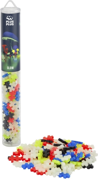 Kreativní sada Plus-Plus Glow obsahuje 100 dílků v atraktivním balení tubusu, ideálním na cesty. Vytvořte vlastní designy s materiály, které ve tmě svítí!