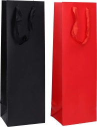 Stylová dárková taška na láhev ve střední velikosti M o rozměrech 11,8 × 9,5 × 36 cm je ideální pro víno, prosecco či jiné nápoje. Univerzální celoroční design a výběr ze 4 barev zaručí elegantní zabalení dárku pro každou příležitost.