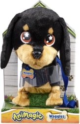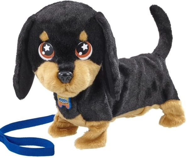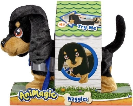 Waggles ožívá realistickým pohybem a zvuky – kráčí po podlaze, radostně vrtí ocáskem a štěká jako pravé štěně.