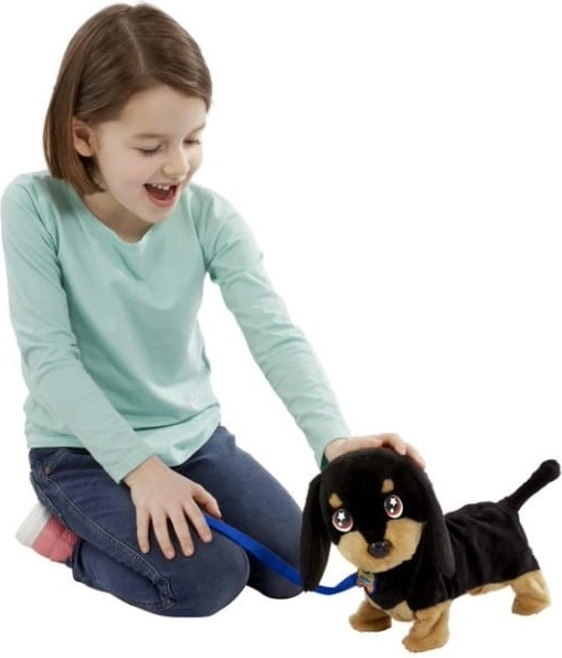 Interaktivní senzory zajišťují, že pejsek reaguje na jemné pohlazení po hlavě, což podporuje citlivý kontakt a vztah dítěte se zvířátkem.