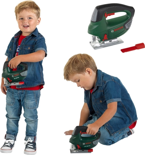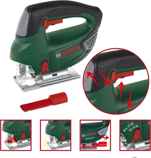 Dětská přímočará pila v ikonické tmavě zelené barvě BOSCH je věrnou kopií skutečného nářadí, ale zcela bezpečnou pro děti. Pevné zpracování a důraz na detail podporují realistickou hru, při které děti bezpečně napodobují dospělé a rozvíjejí šikovnost a představivost.