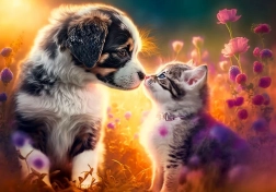 - Motiv: pes a kočka – roztomilý obraz plný emocí