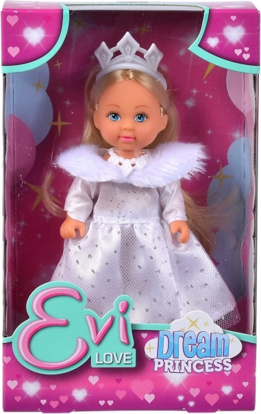 Panenka Evi Love je ideální společník pro vaše dítě, oblečená jako pohádková princezna ve fantastických zimních šatech s chlupatým límcem a třpytivými prvky.