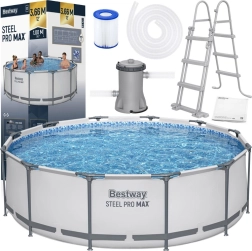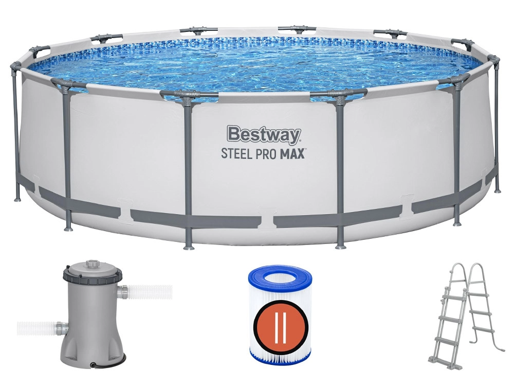 Bezpečnost zvyšuje odnímatelný žebřík, díky kterému lze zabránit samovolnému vstupu dětí bez dozoru. O čistotu vody se stará filtrační pumpa s kartuší (typ II), zatímco průtokové vypouštěcí ventily usnadní rychlé vypuštění vody po sezóně. Snadná montáž, stabilní konstrukce a bohaté příslušenství vytvářejí ideální řešení pro rodinné koupání na zahradě.