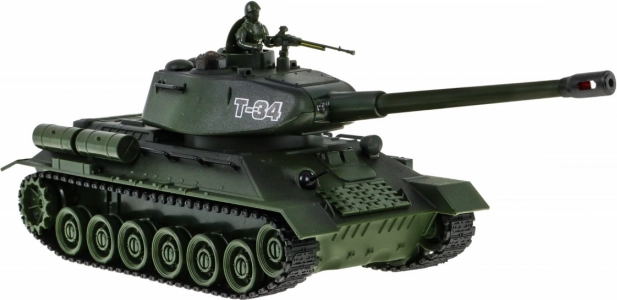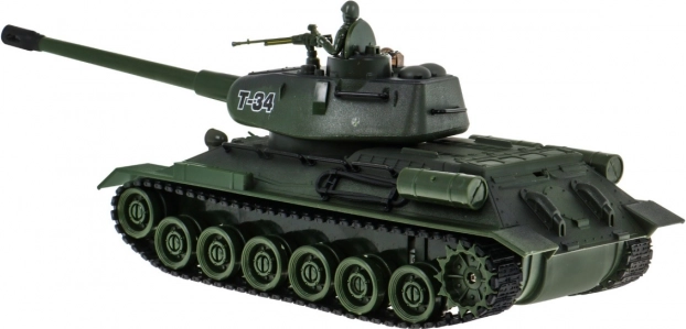 Model T‑34 nabízí otočnou věž, pohyblivou hlaveň a pásy, které věrně napodobují jízdu skutečného tanku. Díky světelným a zvukovým efektům je každá bitva ještě autentičtější.
