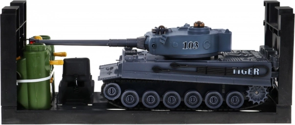 Tato bojová sada přináší realistický zážitek: každý tank má otočnou věž až 320°, korba se dokáže otáčet o 360° a hlaveň se plynule naklání nahoru i dolů. IR systém zaregistruje zásah zvukem i zhasnutím jedné ze tří kontrolek. Po třech zásazích je protivník na 15 sekund nepojízdný – poté můžete začít další kolo.