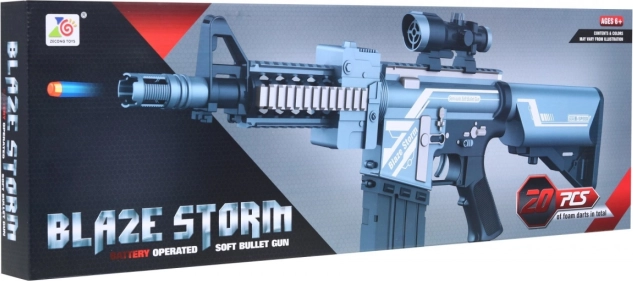 Zažijte akční zábavu s elektrickou dětskou puškou BLAZE STORM pro děti od 6 let. Plně automatický blaster s zásobníkem na 10 nábojů a balením 20 pěnových střel zajistí rychlou a bezpečnou hru. Díky rychlopalbě až 3 střely za sekundu, odnímatelnému taktickému zaměřovači a doletu kolem 10 m je ideální pro domácí i venkovní bitvy.