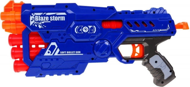 Zažijte akční zábavu s blasterem BLAZE STORM pro děti od 8 let. Tento manuální 6hlavňový vystřelovač nevyžaduje baterie, nabízí výběr mezi malými modrými a velkými červenými pěnovými šipkami a učí přesnosti a koordinaci.
