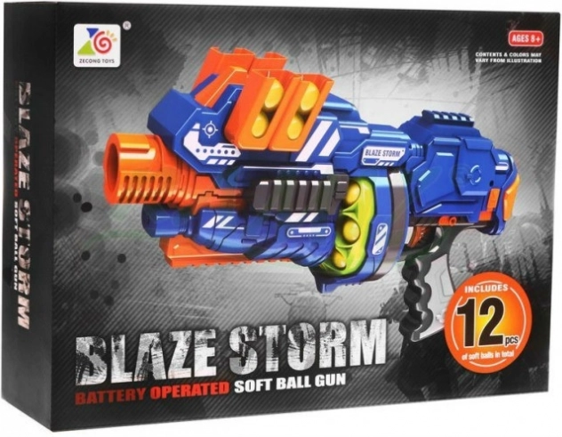Zábavná a bezpečná akční hra pro děti od 8 let! Poloautomatická puška Blaze Storm střílí měkké pěnové kuličky s dojezdem až 10 m, nabízí polomatický elektrický režim, zásobník na 8 nábojů a dodatečné úchyty na náhradní zásobníky. Součástí je 12 kusů pěnových projektilů pro okamžité hraní.