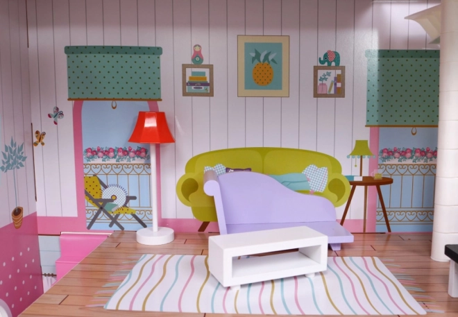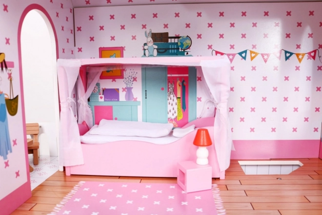 Domeček je vybaven realistickými pokoji s detailními dekoracemi a nábytkem, který zajišťuje autentickou herní zkušenost.