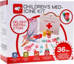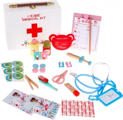 Tato dřevěná lékařská sada obsahuje vše, co malý lékař potřebuje k ošetření svých pacientů. Sada obsahuje 30 různých dílů, které svými tvary a barvami napodobují skutečné lékařské nástroje. Díky této sadě děti nejenže překonávají strach z lékařů, ale také si užívají hru plnou fantazie a radosti. Jednotlivé prvky sady jsou přátelské a barevné, což zaručuje, že dětem budou vyhovovat a lákat je k objevování.