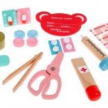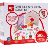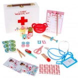 Tato dřevěná lékařská sada obsahuje vše, co malý lékař potřebuje k ošetření svých pacientů. Sada obsahuje 30 různých dílů, které svými tvary a barvami napodobují skutečné lékařské nástroje. Díky této sadě děti nejenže překonávají strach z lékařů, ale také si užívají hru plnou fantazie a radosti. Jednotlivé prvky sady jsou přátelské a barevné, což zaručuje, že dětem budou vyhovovat a lákat je k objevování.