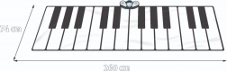 Rozměry podložky: 260 x 74 cm. Rozměry balení: 86 cm x 40 cm x 11 cm. Hračka je určena pro děti od 3 let a je napájena 4 AA bateriemi (nejsou součástí balení).