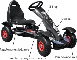 Zažijte s vašimi dětmi neomezenou zábavu a vzrušení s tímto gokartem na pedály! Dětský gokart je vybaven odolnou kovovou konstrukcí a nafukovacími koly, které dodávají potřební stabilitu a rychlost.