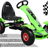 Dětská motokára Racing XL je navržena pro děti od 3 let. Nabízí robustní konstrukci s celokovovým rámem a řetězovým pohonem pro plynulou jízdu. S pneumatikami o průměru 27 cm, které jsou všechny osazeny ložisky, je zajištěn hladký a stabilní pohyb po různých površích.