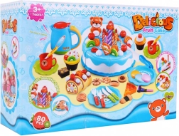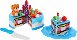 Tato velká sada na oslavu přináší dětem hodiny fantazijní hry. Šestidílný dort se spojuje pomocí suchého zipu a lze ho "krájet" přiloženými noži. Díky malým otvorům lze dort bohatě zdobit ovocem, polevami, svíčkami a roztomilým medvídkem. Větší svíčka po stisku tlačítka svítí dvěma barvami, což dodá oslavě kouzelnou atmosféru.