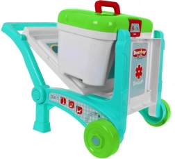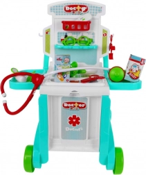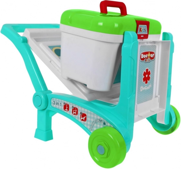 Tato dětská lékařská sada v jemných pastelových barvách nabídne hodiny zábavy i učení. Stolek na kolečkách snadno přeměníte na dva různé vozíky podle věku a výšky dítěte, zatímco kufřík bezpečně pojme všechny nástroje. Na stolku najdete 2 boční poličky na potřebné pomůcky a nadstavbu s poličkami a háčky na „léky“ a doplňky. Díky rukojeti se celá ordinace pohodlně převáží z místnosti do místnosti.