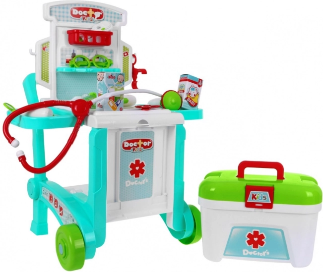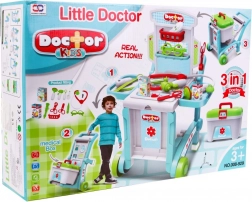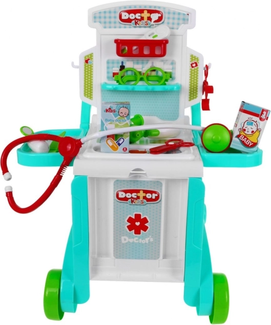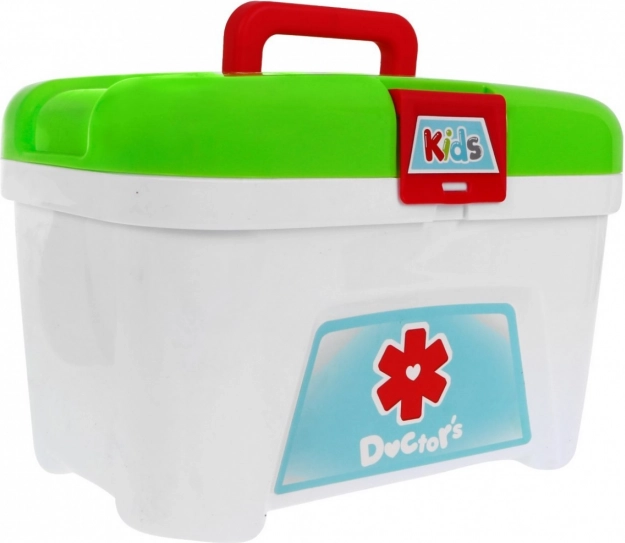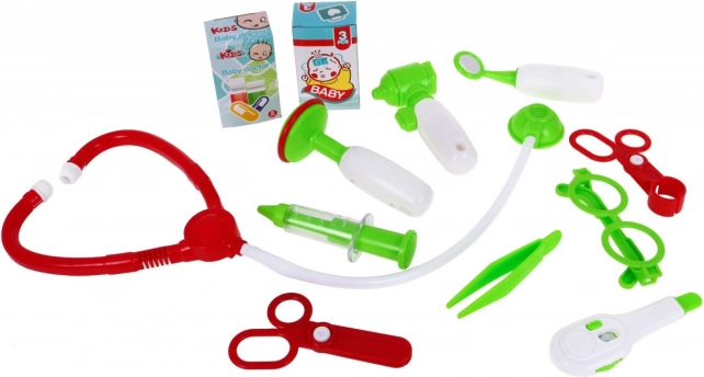 Součástí je vše, co malý doktor potřebuje: stetoskop, brýle, dvoje nůžky (i se zaoblenou špičkou), pinzeta, stříkačka, teploměr, krabička s náplastmi a kompresy, vyšetřovací zrcátko, vyšetřovací nástavec, kladívko a samolepky. Hra pomáhá odbourat strach z lékaře, rozvíjí sociální dovednosti a podporuje představivost.