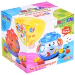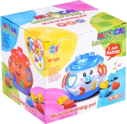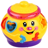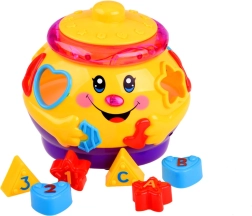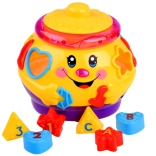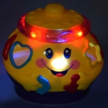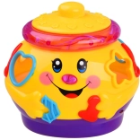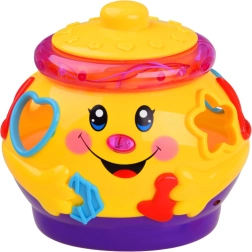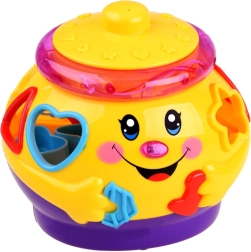Tento veselý hrnec promění učení v zábavu. Děti vkládají barevné dílky do odpovídajících otvorů, přičemž trénují logické myšlení, barvy a tvary, ale i základní čísla a písmena. Po zapnutí se hrnec rozzáří, přehraje veselé melodie a svými efekty podněcuje zvídavost malých objevitelů.