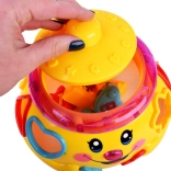 Po zapnutí hračka bliká barevnými světýlky a přehrává příjemné melodie. Audiovizuální podněty podporují soustředění a dělají z učení zábavný zážitek.