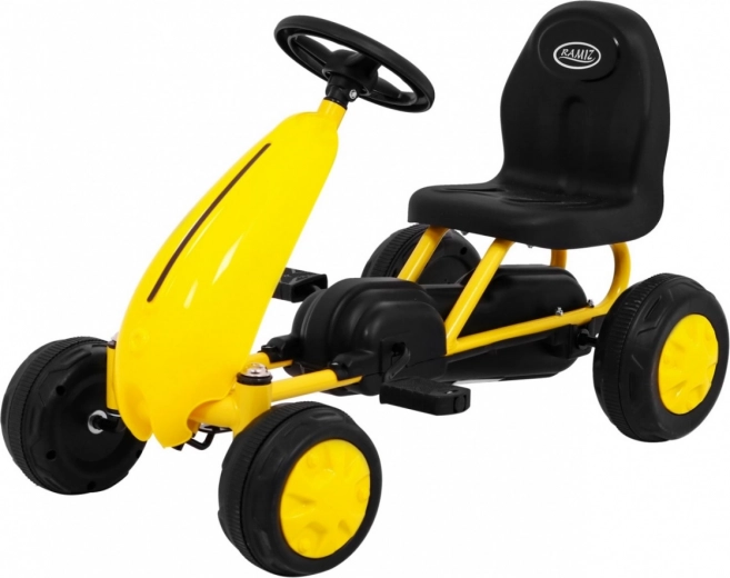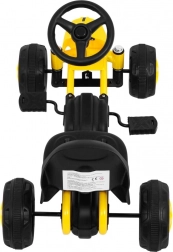 Tato kompaktní šlapací motokára je skvělou volbou pro první ježdění. Díky plně krytému řetězovému pohonu je jízda bezpečná a plynulá. Gumové obruče kol tlumí vibrace a zlepšují přilnavost na chodníku i na dvoře.