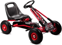 Zábavná a odolná šlapací motokára pro děti od 4 let s nafukovacími koly, ruční brzdou na obě zadní kola a nastavitelným sedlem. Pevná kovová konstrukce, tichý chod díky ložiskům v kolech a bezpečná zakrytá skříň řetězu zajišťují pohodlnou a bezpečnou jízdu venku.