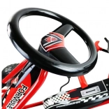 Zábavná a odolná šlapací motokára pro děti od 4 let s nafukovacími koly, ruční brzdou na obě zadní kola a nastavitelným sedlem. Pevná kovová konstrukce, tichý chod díky ložiskům v kolech a bezpečná zakrytá skříň řetězu zajišťují pohodlnou a bezpečnou jízdu venku.